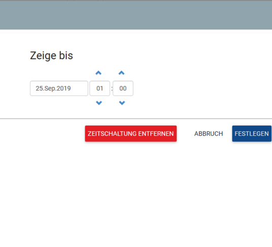 Hier kann ein Start- und Endzeitpunkt angegeben werden, zu der die Zeile sichtbar sein soll. (Das Bild rechts zeigt nur einen Ausschnitt der Maske.) Die Umschaltung erfolgt dann automatisch.